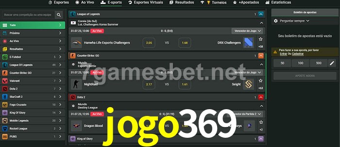 O jogo369 oferece uma grande seleção de opções de apostas em e-sports com probabilidades competitivas